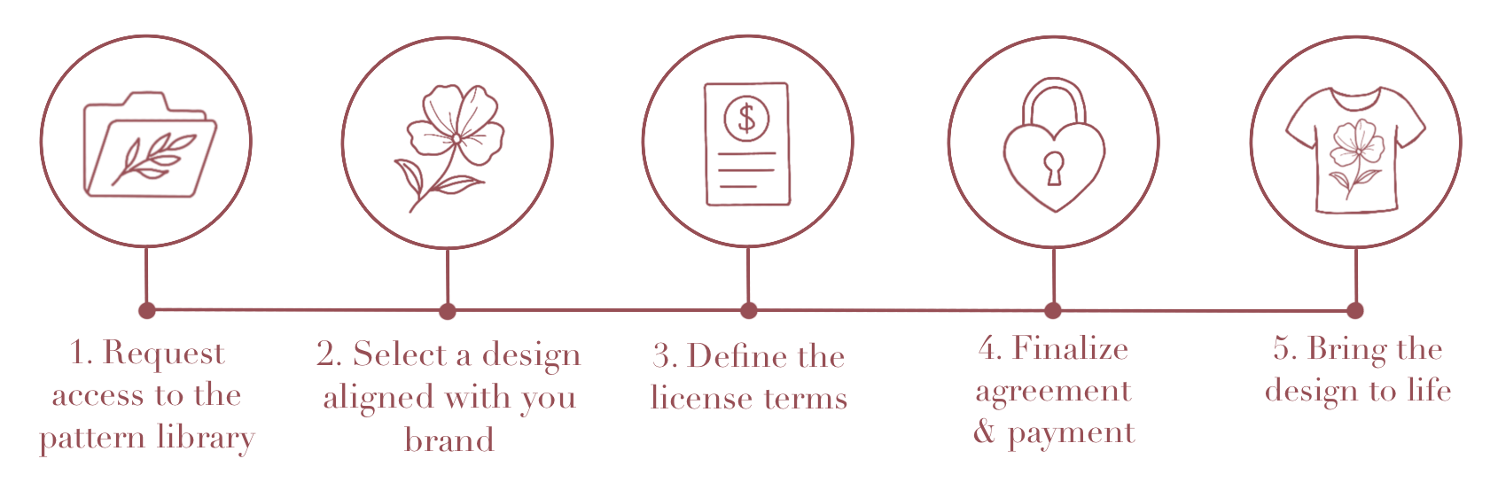 Every request is carefully reviewed. While not all applications can be accepted, we give priority to brands and creative teams seeking unique, high-quality patterns. If any information provided is inaccurate, access may be declined or later revoked.