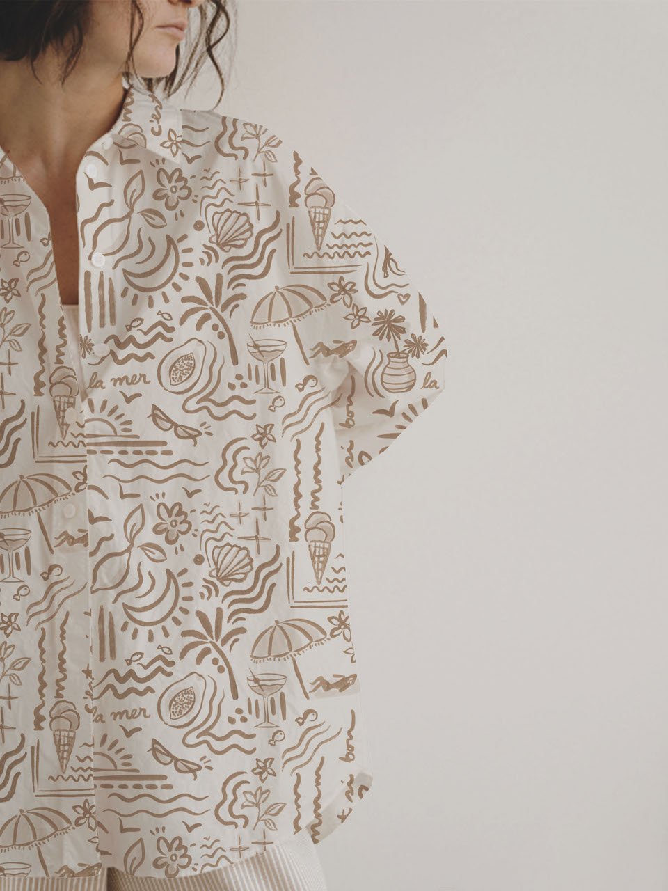 A seamless hand-drawn line art pattern inspired by the ocean, featuring minimalist wave motifs and marine contours. Designed with elegance and simplicity, this versatile print is ideal for fashion textiles, resort wear, swimwear, and coastal-inspired collections. Exclusive original artwork by Lily Sabbagh.