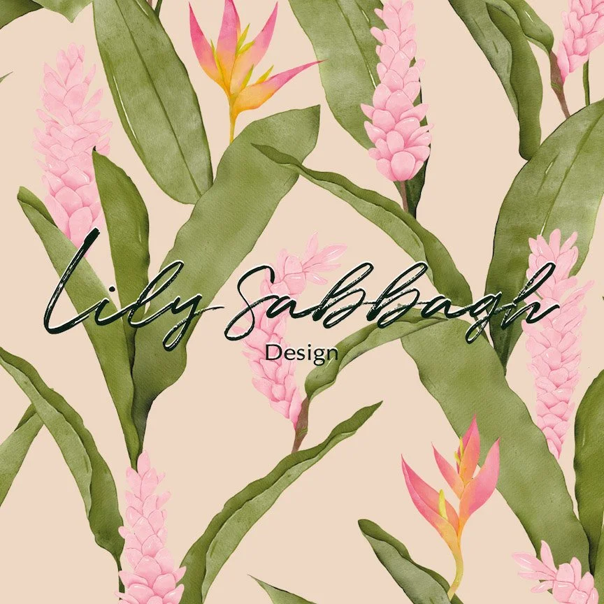 A seamless tropical pattern inspired by the coastal beauty of Lahaina, Hawaii. Featuring watercolor palm leaves, hibiscus, and ocean-toned botanicals, this design evokes the serene essence of island life. Perfect for resort wear, summer textiles, swimwear, and tropical home décor. Original illustration by Lily Sabbagh.